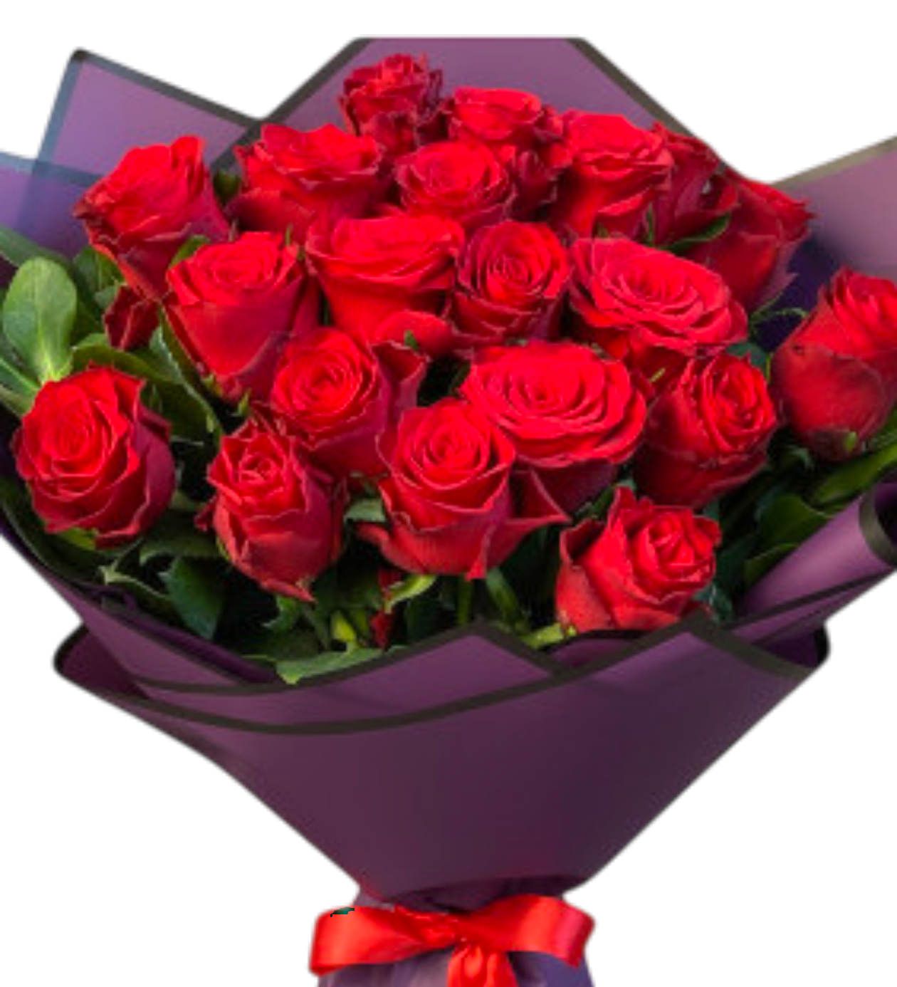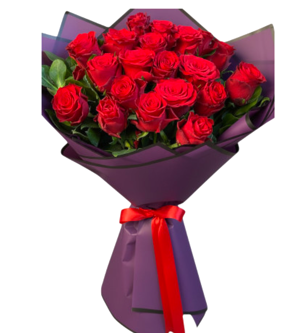 Mor Ambalaj Kağıdında Kırmızı Güller